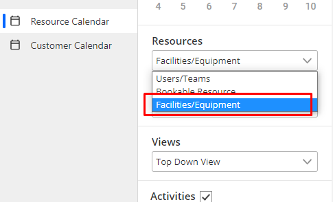 The Facility/Equipment resources are used for service activities under the Dynamics365 CRM.
